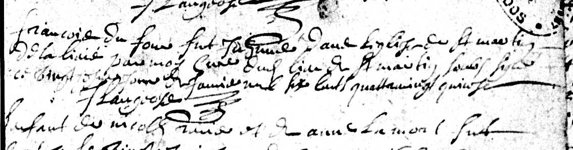 - 24 janvier 1695 : " francois Du four fut Inhumç dans Lçglise de st martin de la lieue par moy Curé dusit lieu de St martin Sous Signé ce Vingt quatre jour de janvier mil six cent quattrevingt quinze F Langosse"